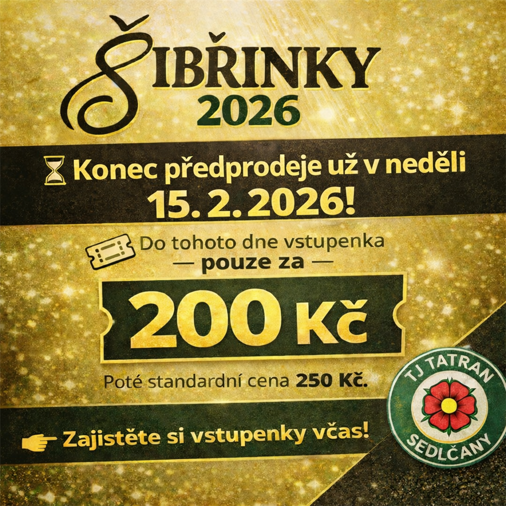 Vstupenky na letošní ŠIBŘINKY je možné si zakoupit v předprodeji za zvýhodněnou cenu 200 Kč. Předprodej končí 15.února!!!