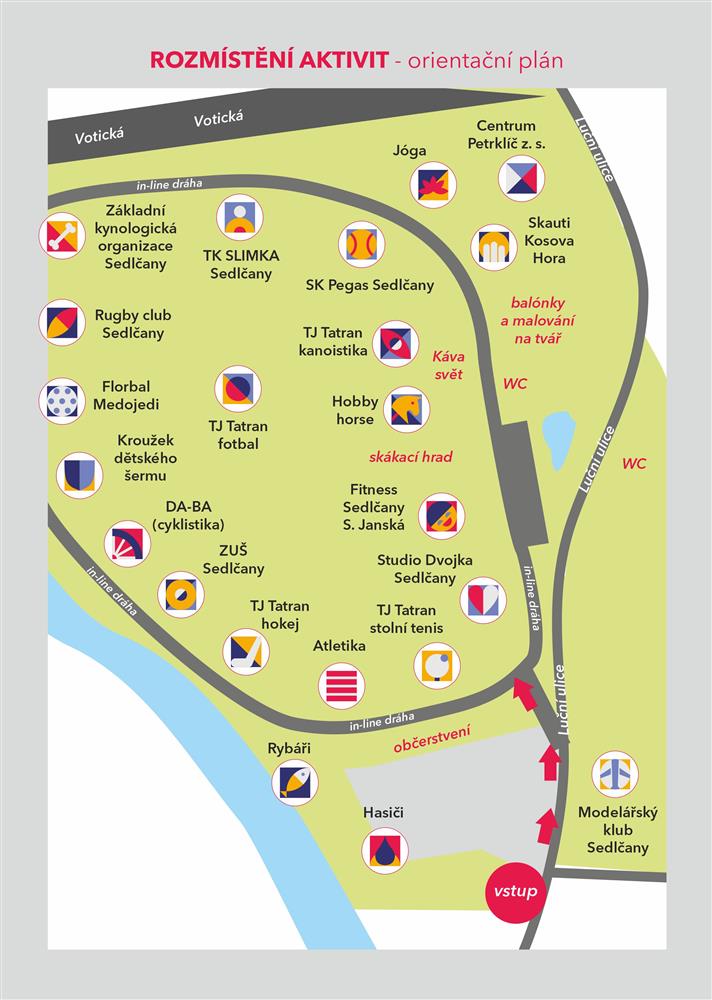 Mapa areálu s vyznačením jednotlivých spolků: ZDE